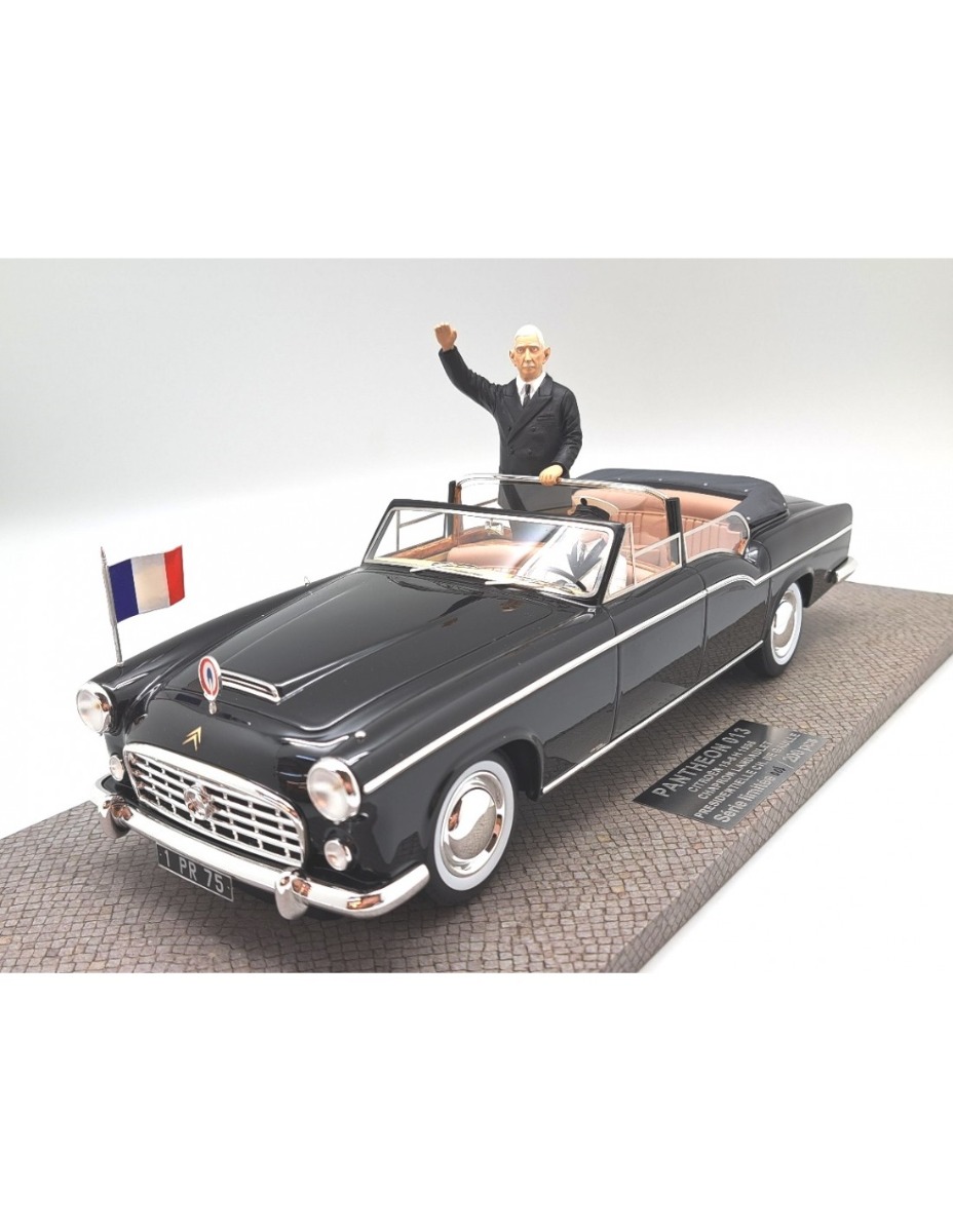 CITROEN 15-6 H Landaulet Chapron 1956 noir Présidentielle avec figurines Charles De Gaulle et son chauffeur