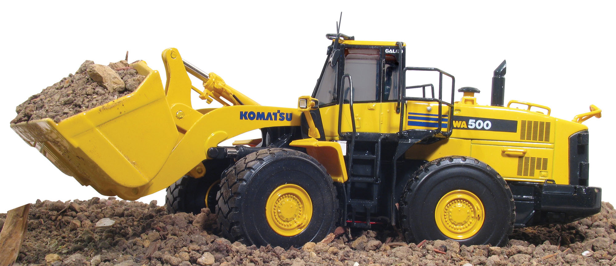 Chargeur sur pneus KOMATSU WA500 à l'echelle 1/50 fabriqué par FIRST GEAR