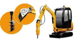 Coffret Minipelle JCB 8016 avec Accessoires à l'echelle 1/25 fabriqué par JOAL