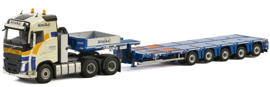 VOLVO FH4 Globetrotter 6X4 Altéad avec semi porte engins extensible NOOTEBOOM 5 essieux à l'échelle 1/50 fabriquée par WSI dans la catégorie Porte engin