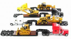 Lot 4 Camions PETERBILT 389 avec Porte-Engins et Engins de Chantiers à l'echelle 1/87 fabriqué par NORSCOT