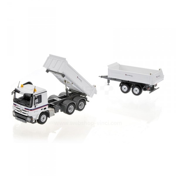 MB Actros 6X4 Tribenne Meiller avec Remorque EUROVIA à l'echelle 1/50 fabriqué par CONRAD