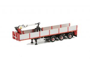 Semi Plateau-ridelles avec Grue de Déchargement à l'echelle 1/50 fabriqué par WSI