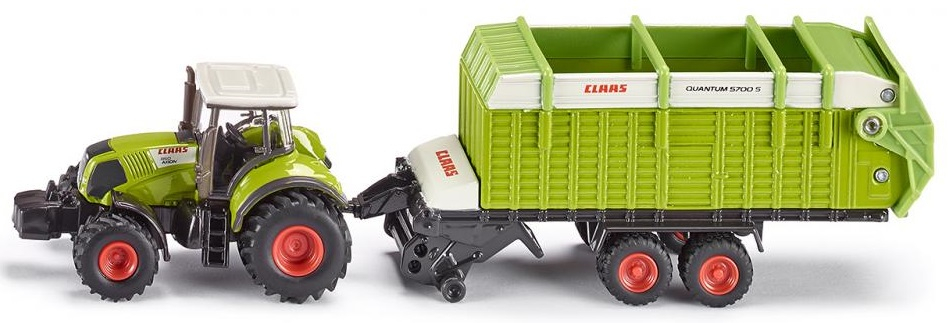 Tracteur CLAAS Axion avec autochargeuse CLAAS Quantum à l'échelle 1/87 fabriqué par SIKU