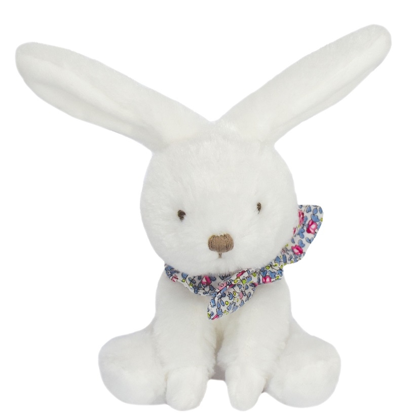 Lapin chouchou doudou avec foulard Bleu fleuri