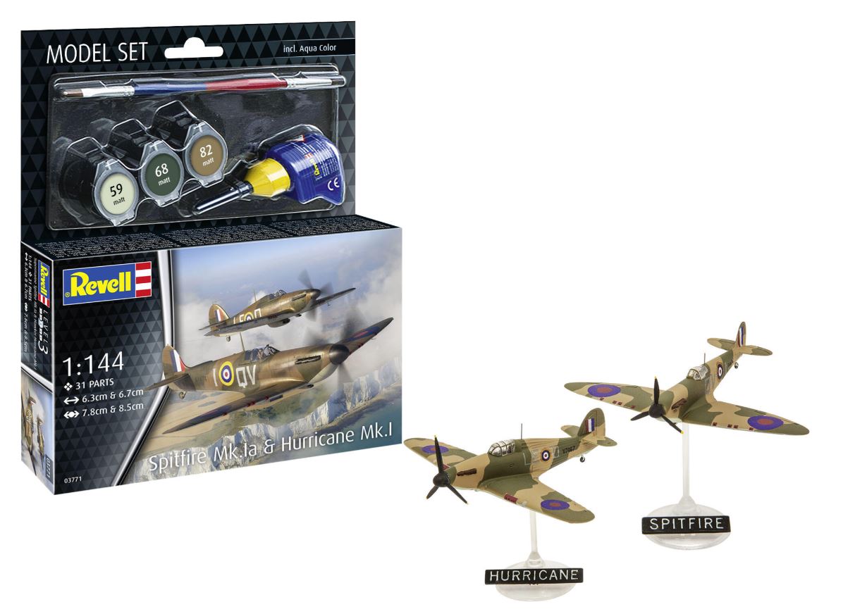 MODEL SET - Avion SUPERMARINE Spitfire Mk.Ia & HURRICANE MK.I à assembler avec peinture