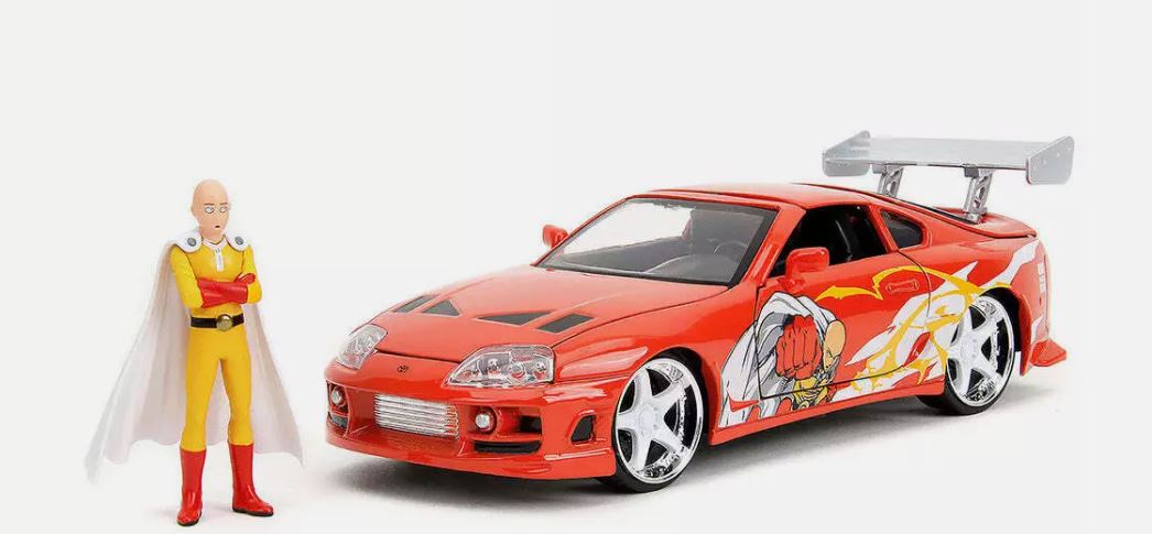 TOYOTA Supra 1995 rouge avec figuirne ONE PUNCH MAN