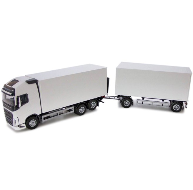 VOLVO FH 6x4 blanc avec remorque 1 + 1 essieu et hayon