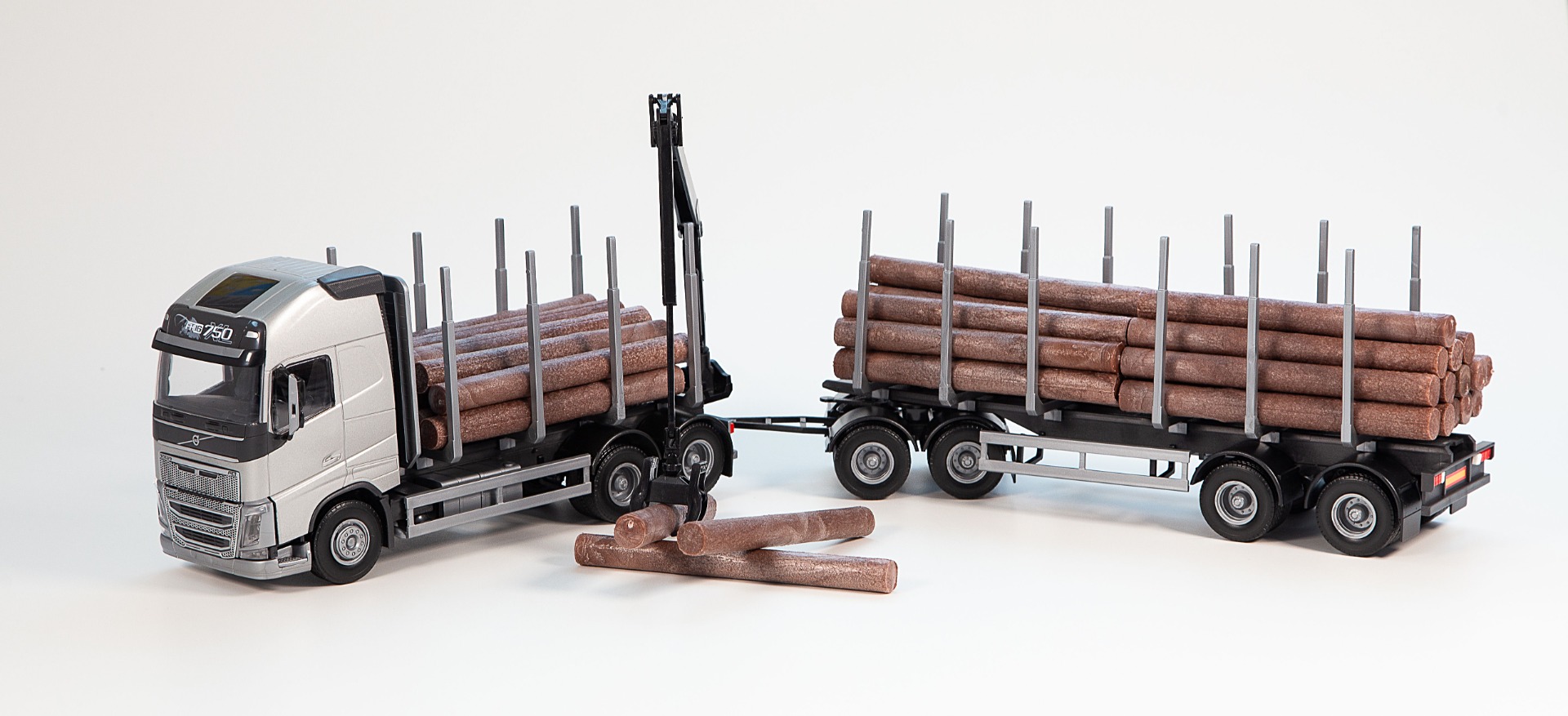 VOLVO FH16 6x4 gris porteur avec remorque 2+2 Essieux transport de bois