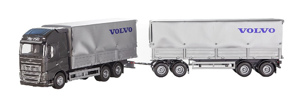 VOLVO FH16 750 6x4 noir porteur avec remorque bâchée 2+2 Essieux
